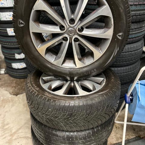 4 stk alufælge -Borbet W Graphit, 8x18 5 x114.3 ET 40 med vinterdæk 215-55-18, TPS Ventil ALCAR UNI sensor. Brugt 1 sæson på Nissan Quashqai 2021 J11