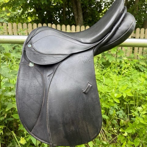Model Scandica DL, 17", bom 29 (smal/medium), blødt elgskind i sæde og knæpuder, super god knæstøtte. Ældre, men i rigtig god stand, nærmest ingen brugsspor, kun brugt et par år pga. hesten voksede fra den i bredden. Altid været opbevaret inde (røgfrit) og smurt ind minimum 1 gang årligt. Gjordstropper som nye.