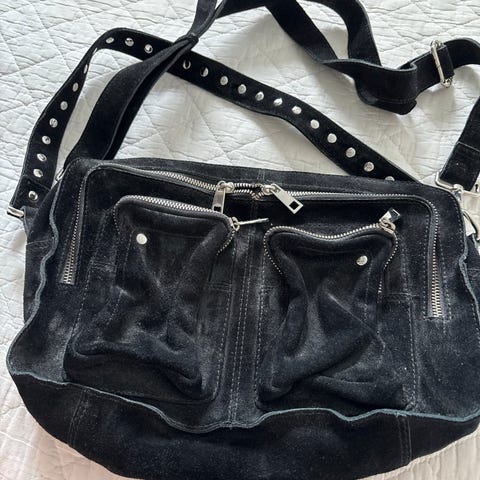 Taske i leopard mønster med mange rum