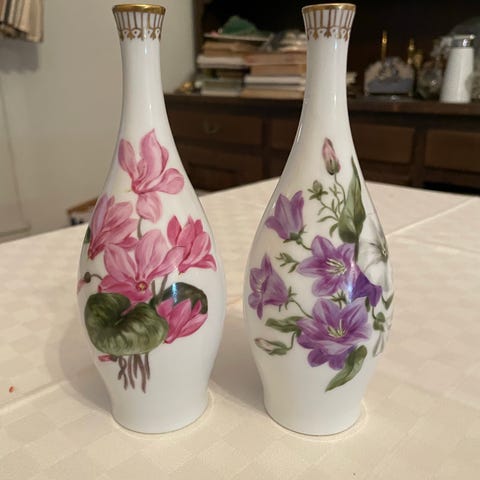 2 smukke neutrale krukker med mat hvidt mønster på glat hvid porcelæn. Fra Rosenthals 100 års jubilæum i 1979. Aldrig brugt - kun stået til pynt. Højde 8 cm, diameter 9,5 cm - sælges samlet for 300 kr.