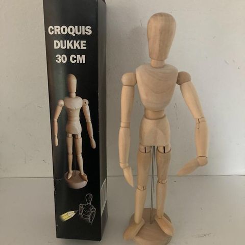 Mannequin, Fin croquis dukke i træ, ny og ubrugt, 30 cm høj. Kan bruges til at tegne efter og som dekoration. I original æske. God gaveide til en som kan lide at tegne.