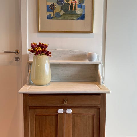 Sødt gammelt servante skab med marmor opsats måler 110x63x42,5 med 1 skuffe og skab med 2 hylder