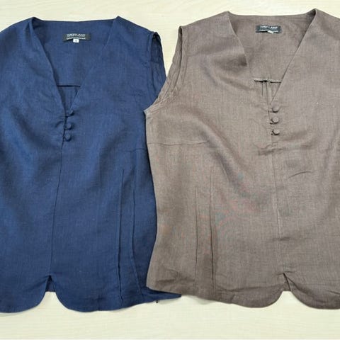3 skønne toppe fra Haugland Collection i 100% hør i helt enkelt design med fin detalje med hulmønster foran og lille slids i siden.