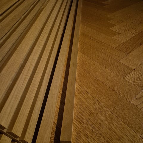 Vi har aldrig fået brugt disse smukke fyr endestykker. De kan anvendes til gulv, trappetrin, møbel eller hvad din fantasi byder ind med.
