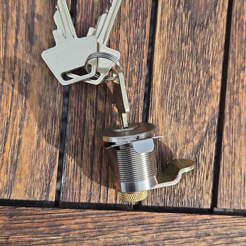Kun en nøgle medfølger. Kraftig model. Virker perfekt.