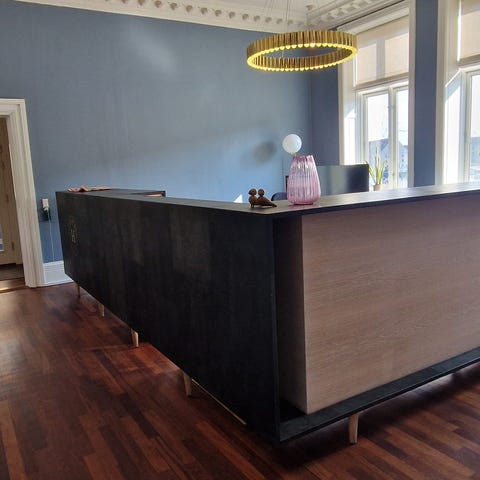 Specialfremstillet af snedker. Bredde 3 meter. Dybde 45cm. Højde 105cm. Nypris 25.000,-.
