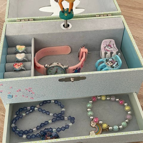 Smykkeskrin med rum, harlekinmønster/multifarvet.