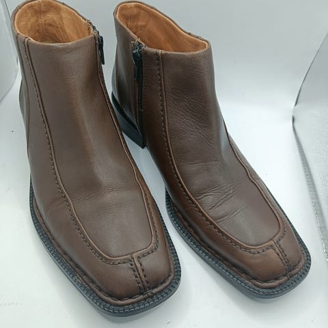 Flotte og kun sparsomt brugte herrestøvler i sort læder. Støvlerne har ofte været plejer med læderfedt. Der er lidt brugspor på sålerne. Hver støvle har et kosmetisk spænde, det kan bruges eller det kan undværes.