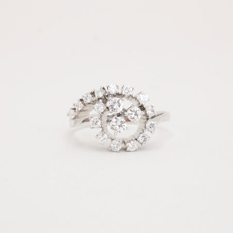 Cluster ring i 14K hvidguld med diamanter (0,52 ct), Str.