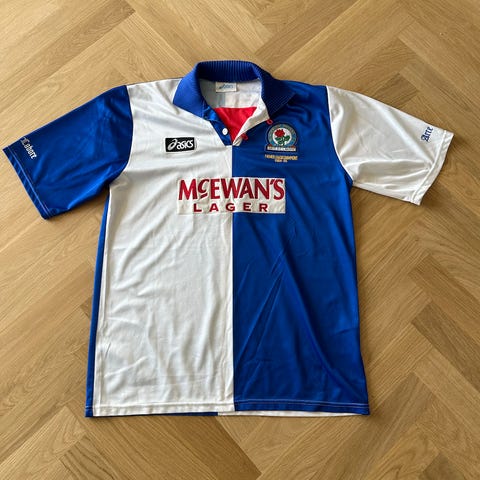 Hjemmebanetrøje fra 1995-96 sæsonen. Den har, ret naturligt når man tænker på alderen, lidt ‘fnuller’ her og der, ellers rigtig god stand!