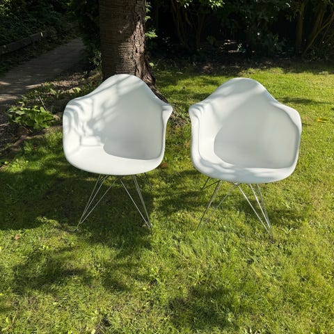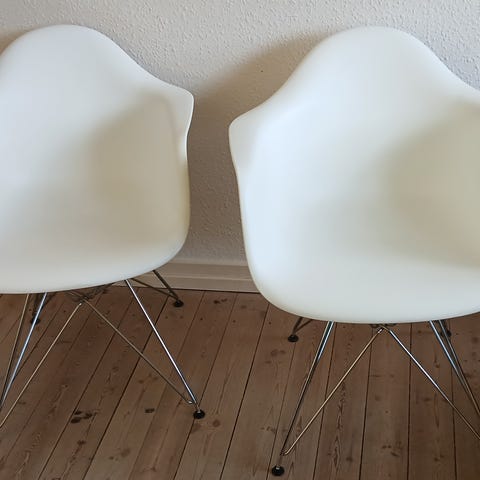 2 skal stole i hvid plast fra eames sælges samlet for 500kr
