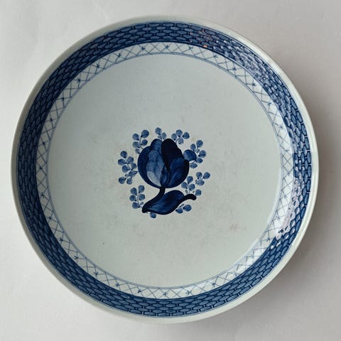 Et mellemstort/mindre ovalt Tranquebarfad, som måler ca. 27,7 cm på den lange led og ca. 19,6 cm på den korte.