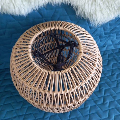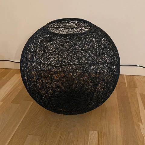 Flot og moderne lampeskærm i sort snor/designtråd. Rund form med flot skyggespil, når lyset tændes.