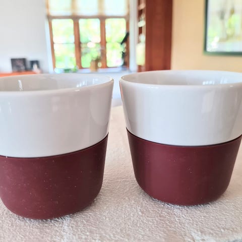 Vi får ikke brugt disse to krus, så de skal ud og gøre glæde i et nyt hjem.