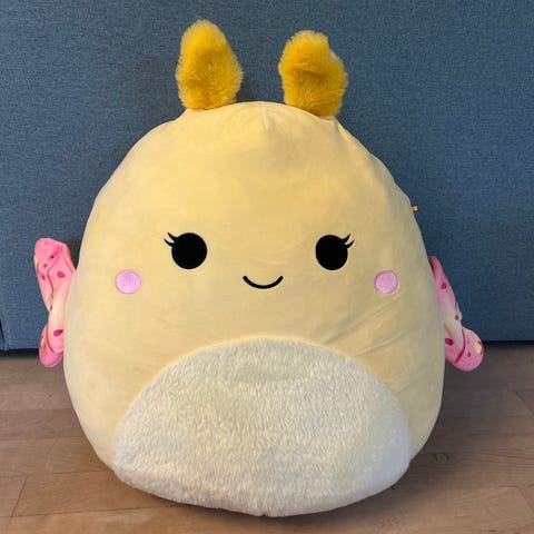 Stor Squishmallows sommerfugl, Nixie (35 cm), søger nyt hjem. Har kun stået til pynt uden soleksponering.