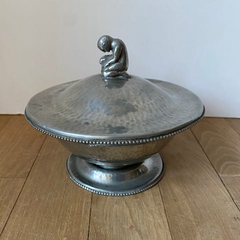 Tinkrukke med knop af træ. HAGS tin fra Norge