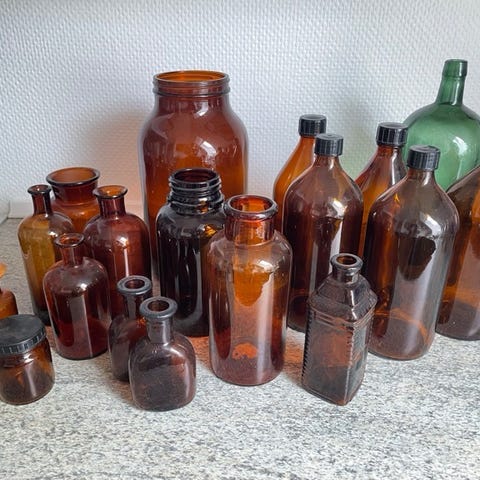 APOTEKERFLASKE, STOR OG FLOT MED LÅG, BYD 😊
