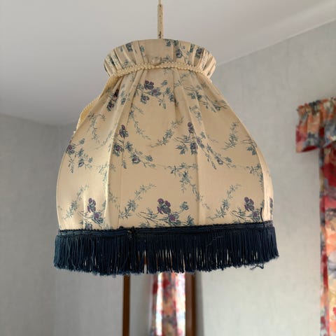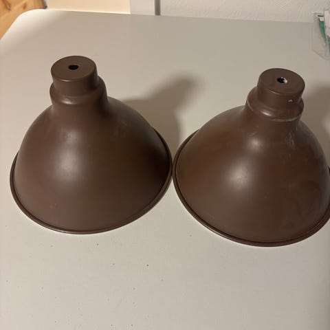 Anden loftslampe, Ukendt men vistnok en Randers -lampe, 2 flotte lamper, givetvis fra 20’ erne. Der er porcelænsfatning og bliklampeskærme. Lamperne står total originale og med patina. Farverne på lamperne er hvid og grøn.