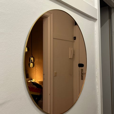 FLOT RUNDT FACETSLEBET BØRSTET SØLV SPEJL 72 CM I DIAM. HENTES I HUNDIGE