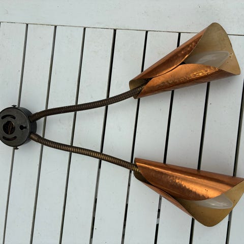 Dobbelt Lampet med krystal lign. skærme, Vintage, med afbryder på bagstykket. 30 cm høj, 24 cm bred og 14 cm dyb.