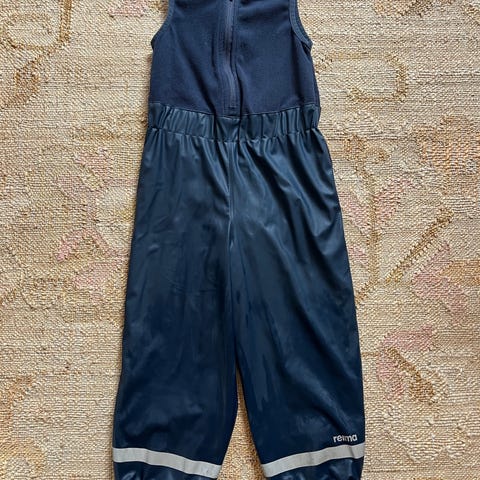Super regntætte bukser fra Reima i mørkeblå som kan justeres i stropperne og kan derfor tilpasses så de kan bruges i lang tid.