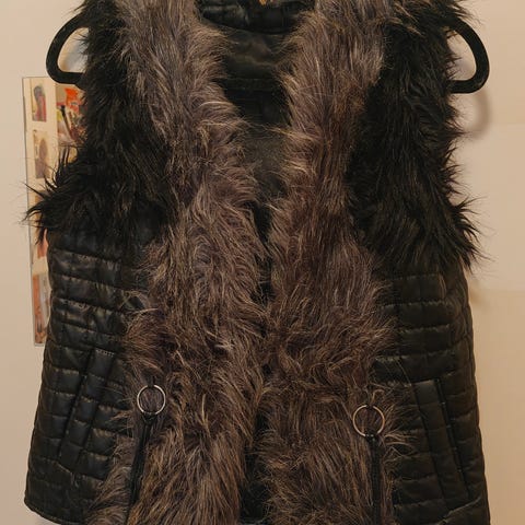 Pels vest med fake pels fra mærket WLNXI i størrelse L. Den er sort med sort og brun pels. Brugt få gange så stadig i ret god stand. Ingen brugsspor ud over lidt på pelsen i at den måske lige skal redes eller lign. Men intet der er gået i stykker.