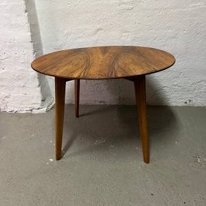 Olieret mahogni (formodentlig), med kehlet kant og smukke detaljer og spil i træets åre. Farven er bedste gengivet i første foto.