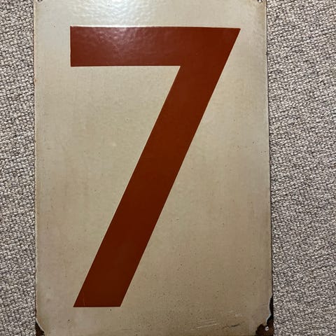 Ældre DSB skilt med skriften "tjenestekupe" / "rygere". Den er præget med DSB + krone samt serienummeret.