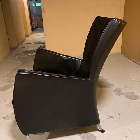 Super flot og vedligeholdt Montis stol i sort læder sælges. Meget lidt brugt og har næsten kun stået til pynt. Sælges kun fordi vi ikke har plads til stolen i vores nye bolig.