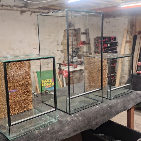 Står du/i og mangler terrarier til jeres næste familie medlem. Eller bare mangler glas til jeres nuværende så skriv det ønskede mål og hvad tilbehør i vil have så sørger vi for en god pris og en god oplevelse