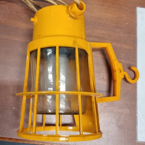 Arbejdslampe, Flügger, Fed gammel patineret flugger arbejdslampe type 1990. Virker som den skal.