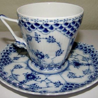 Royal Copenhagen Musselmalet Helblonde Kaffekop og Underkop No. 1035 VI SENDER