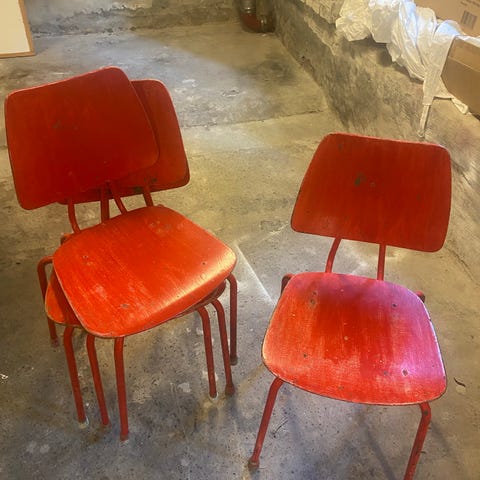 Rustikke stole med ny pude og betræk. Stolene changere i farven, men er en mørk brun.