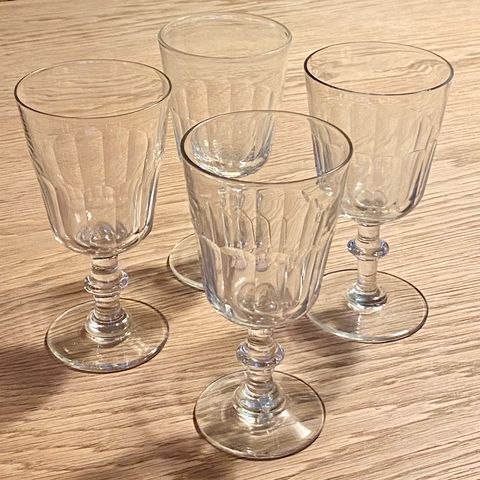 4 Christian d. 8/Berlinois rødvinsglas med slibninger højde ca. 15 cm fra Kastrup/Holmegaard Glasværk. Det er velholdte, robuste, drevne og mundblæste glas uden skår og revner, og de har ikke været i opvaskemaskine