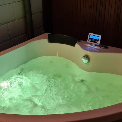 Hjørnebadekar med bobler, belysning og radio – 1,5m x 1,5m – perfekt til 2 personer