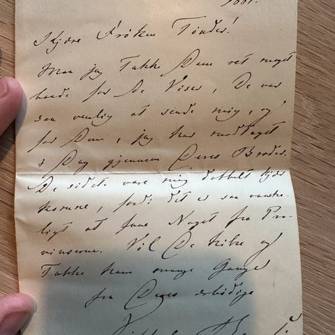 Sælger et brev fra Carl Ploug, skrevet i 1856 på et brevpapir fra "Fædrelandet".
