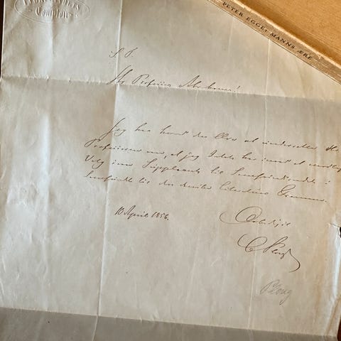 Sælger et brev fra Vilhelm Bergsøe fra 1881.