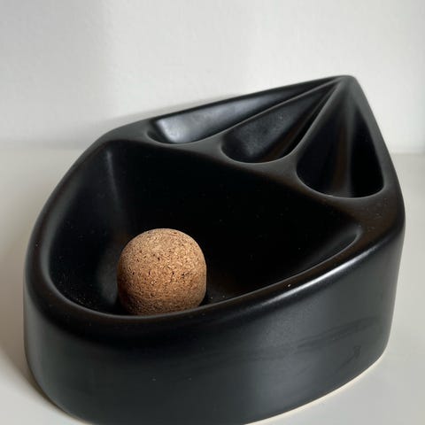 Vintage opaline glas askebæger, Stanwell, fra 1960'erne. Til smykker, pibe eller smøger. Fejlfri og fuldstændig som ny. Mellem hver af de 4 "riller" er der 4 ens Stanwell mærkater. Jeg har flere annoncer med pibe udstyr. Søg evt på: ksø pibe