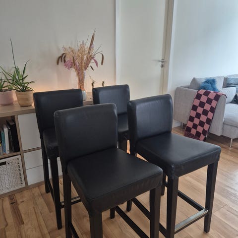 Barstol Bergmund IKEA nypris 1400kr. To betræk medfølger et i hvid bomuld og et et mørk blå velour.