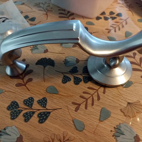 Dørhammer med kikkhull i metall 15cm, ukjent metall. Ubrukt 100kr