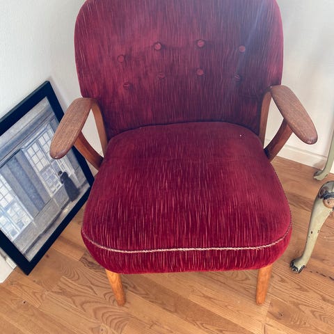 2 RETRO LÆNESTOLE + GLASBORD I TONET GLAS