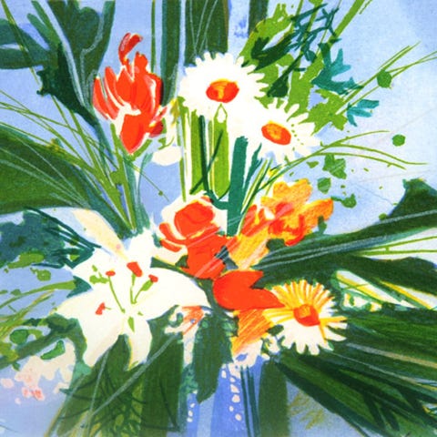 Litografi, Claude Mars, motiv: Bouqet de Fleurs , b: 56 h: 38, Ægthedscertifikat sidder bagpå rammen.