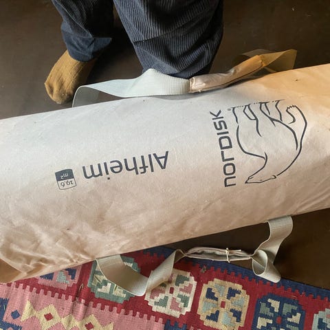 Sælger dette skønne Nordisk Alfheim Glamping telt, 12.6. Kabine og bund medfølger. Kun brugt få gange. Nogle af stropperne til kabinen er blevet repareret med kraftige nylonremme, i samme kvalitet som de originale, efter mine børn legede lidt for vildt i teltet.
