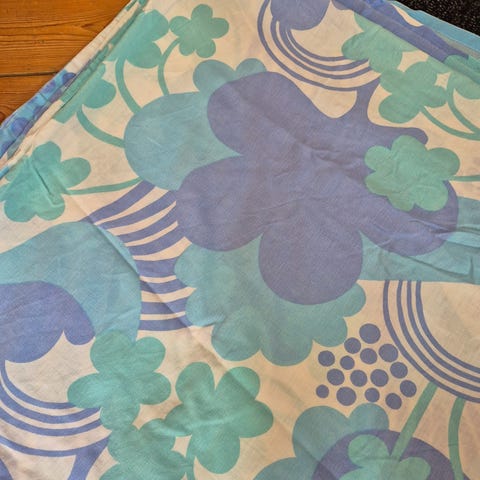 Rigtig fint retro dynebetræk i lyserødt med lilla blomstermønster.