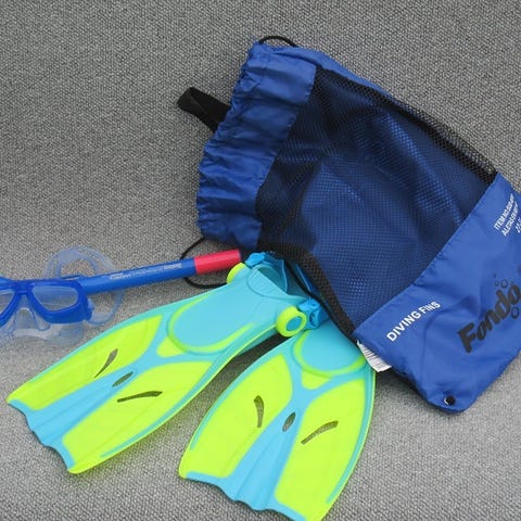 Beuchat Palau snorkelsæt bestående af gule og sorte finner, to CRESSI masker med blå rammer (den ene med glas til lettere nærsynet) og en sort og blå våddragt. Sættet er egnet til snorkling og dykning og inkluderer det grundlæggende udstyr til undervandsaktiviteter. Den ene maske mangler en holder i den ene side - kan nemt suppleres. Ikea sportstaske til udstyret medfølger.