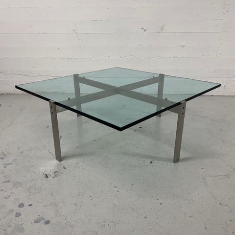 Jeg sælger denne flotte Poul Kjærholm PK-61 glasplade i størrelsen 80x80cm, den fremstår i flot stand men har desværre fået en skade på hjørnet, den kan dog vendes ned imod stellet og skjules herved, derudover har bordet også små overfladiske skrammer :)