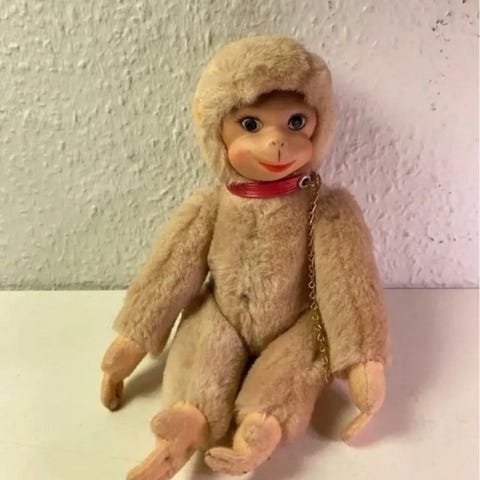 En mini mus og en mini abe , i teak og læder, fra 1960 erne, sælges samlet for 150