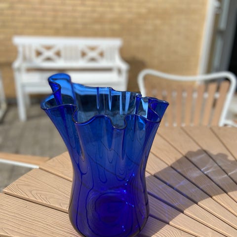 Blå høj glasvase