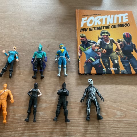 Diverse figurer og skatte kister fra Fortnite og massere af våben.
