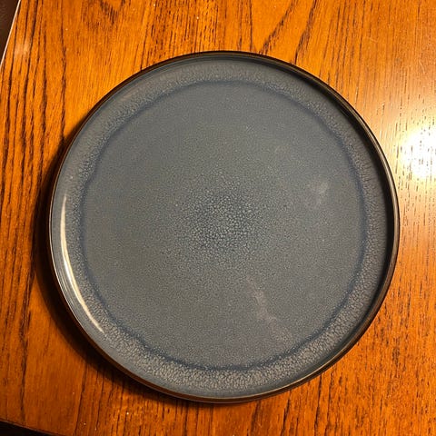 Ukendt mærke tallerken i stentøj med en diameter på ca. 20 cm. Farven er grå med en rustik finish, der giver et naturligt udtryk. Velegnet til både daglig brug og særlige lejligheder.